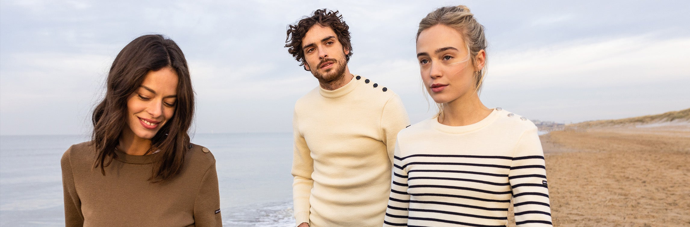 De iconische Bretonse trui is hét symbool van Saint James. Deze truien zijn verkrijgbaar in verschillende pasvormen, kleuren en materialen, en vormen de basis van elke nautisch geïnspireerde outfit. Gemaakt voor comfort, ontworpen voor stijl.