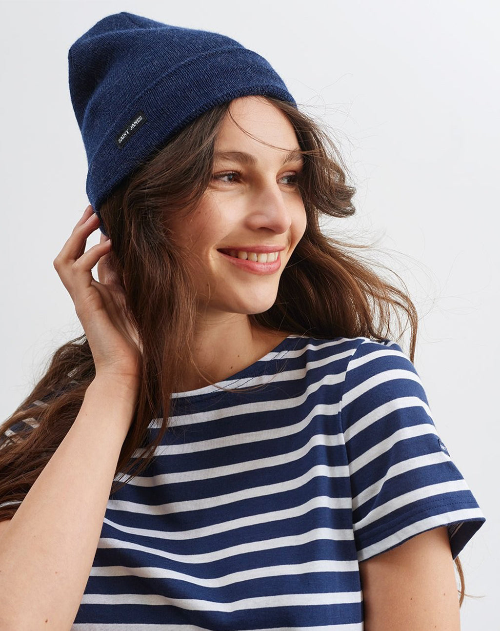De wollen mutsen van Saint James staan bekend om hun duurzaamheid. Ze worden gemaakt van dezelfde wol en gebreid op dezelfde manier als hun wollen truien. Deze muts houdt het hoofd lekker warm en het strakke breisel voorkomt dat de regen binnendringt.