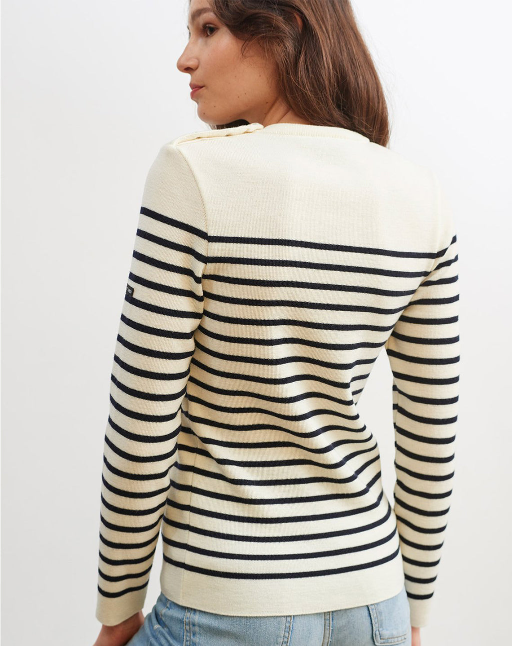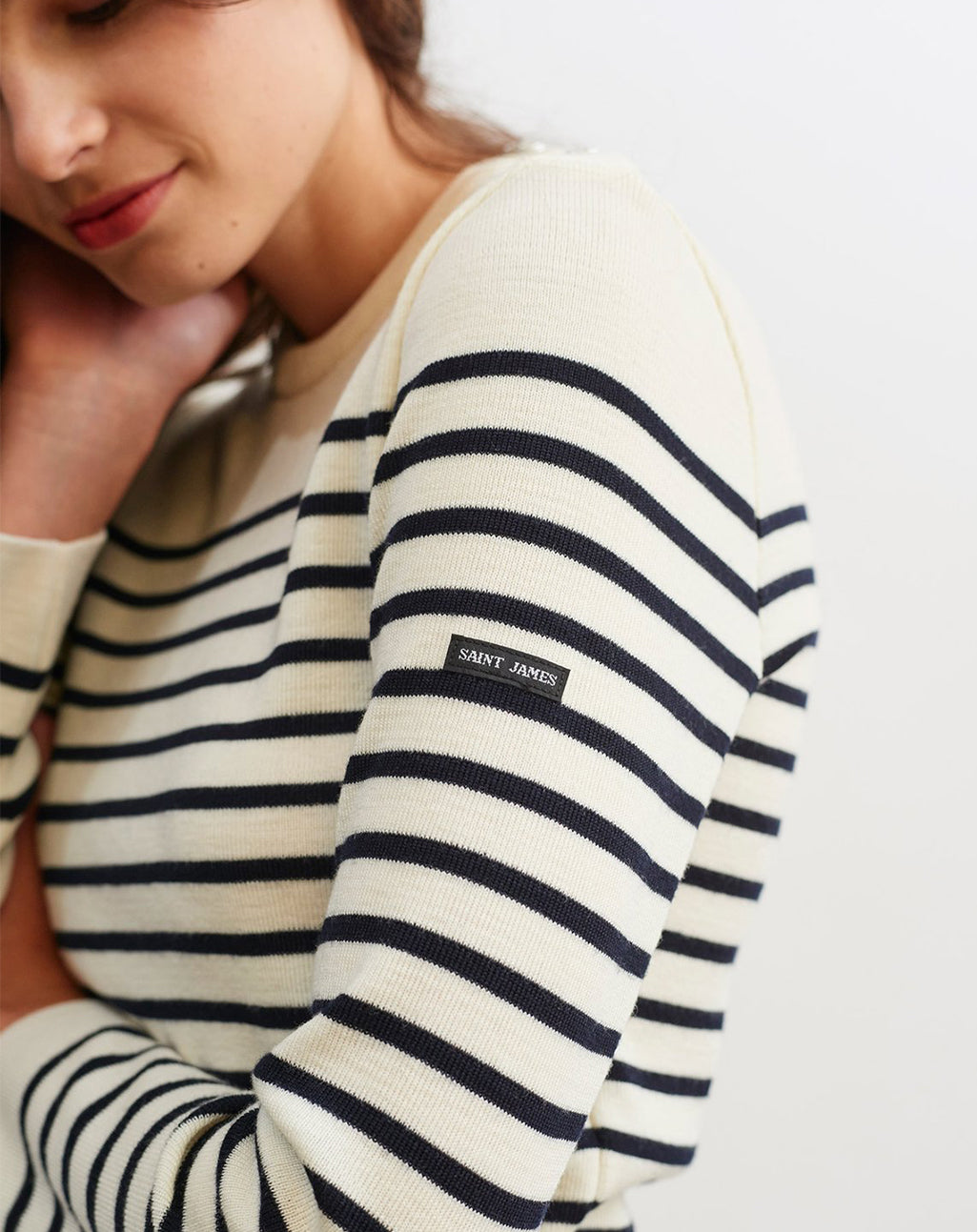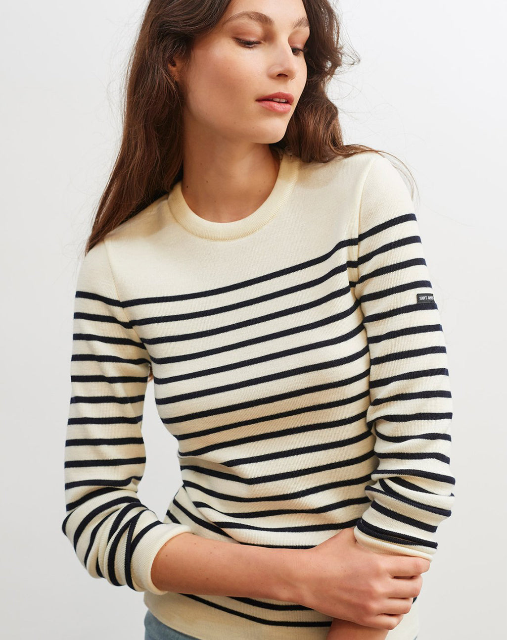 De Marée is een eigentijdse interpretatie van de klassieke Bretonse trui, met een slanke pasvorm en tijdloze uitstraling. Deze 100% wollen trui van Saint James is lichter en zachter dan de authentieke matrozentrui, maar behoudt alle iconische kenmerken.