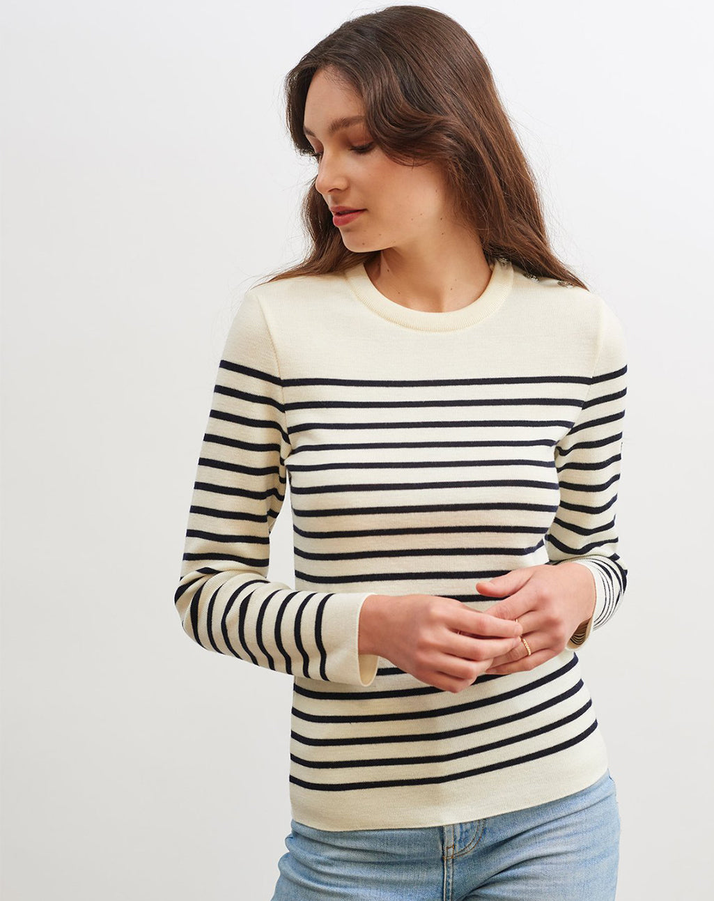 Een elegante klassieker die moeiteloos te combineren is – perfect voor liefhebbers van maritieme stijl en hoogwaardige knitwear!