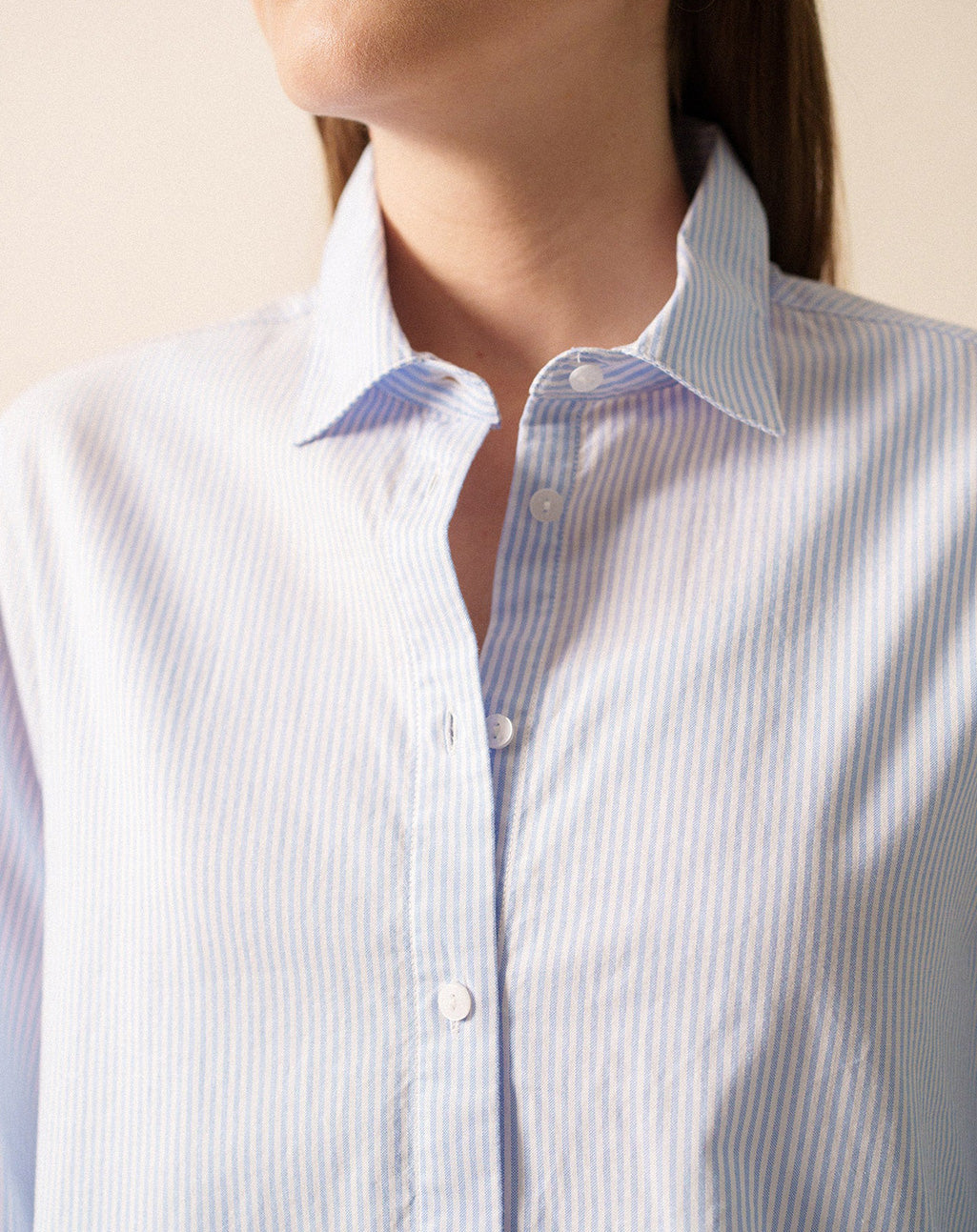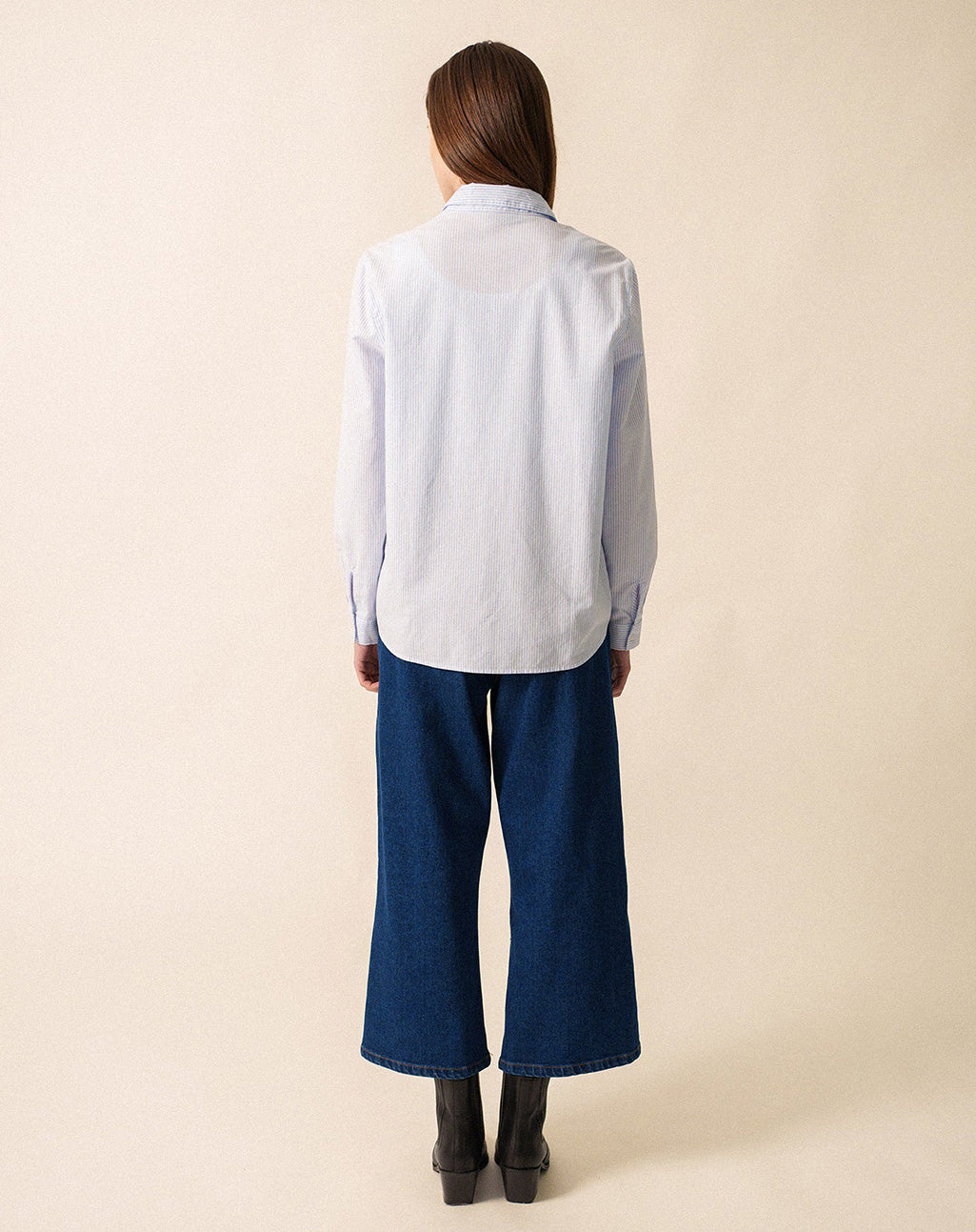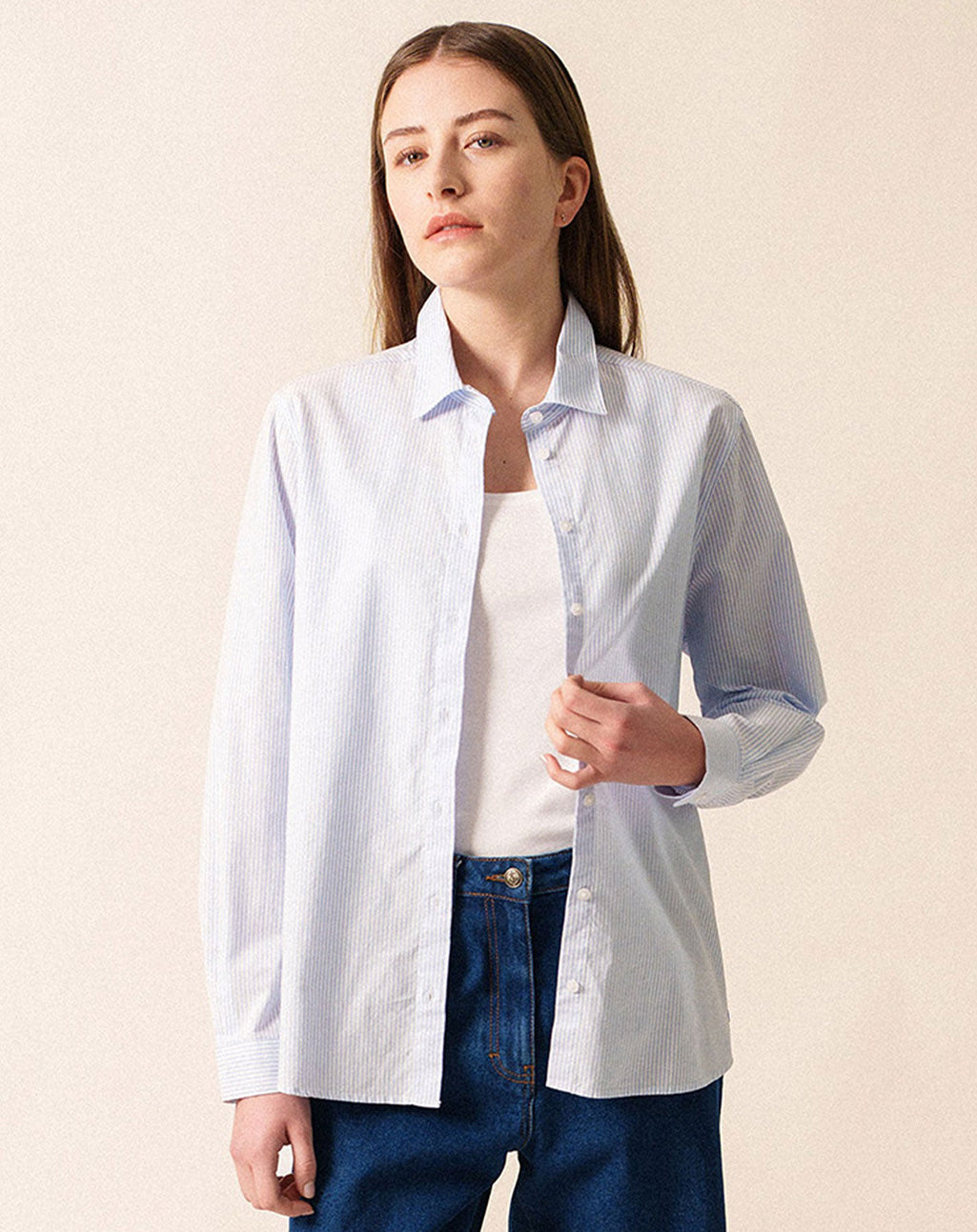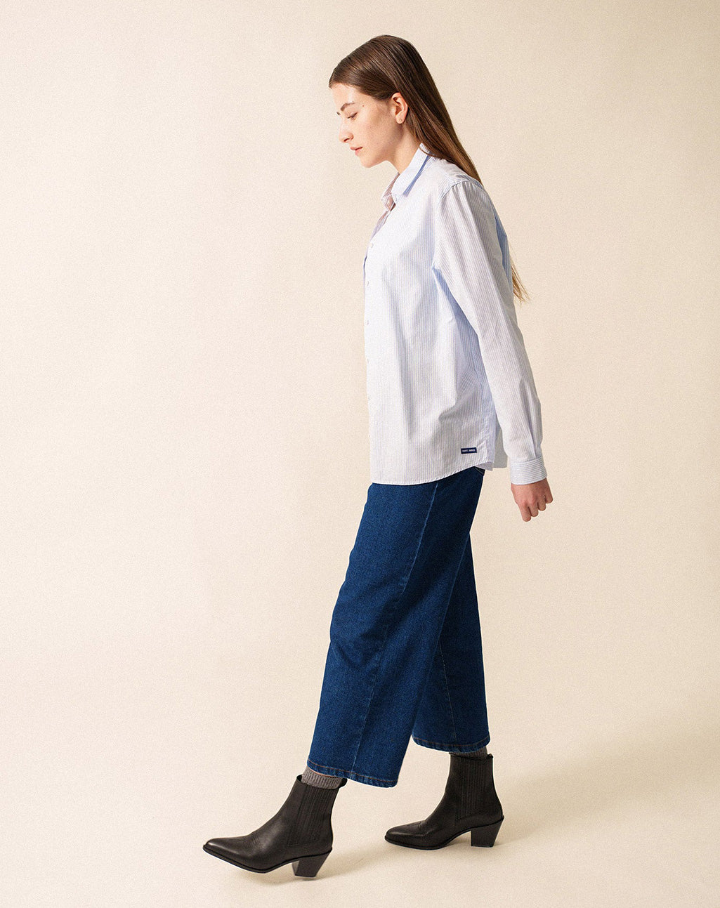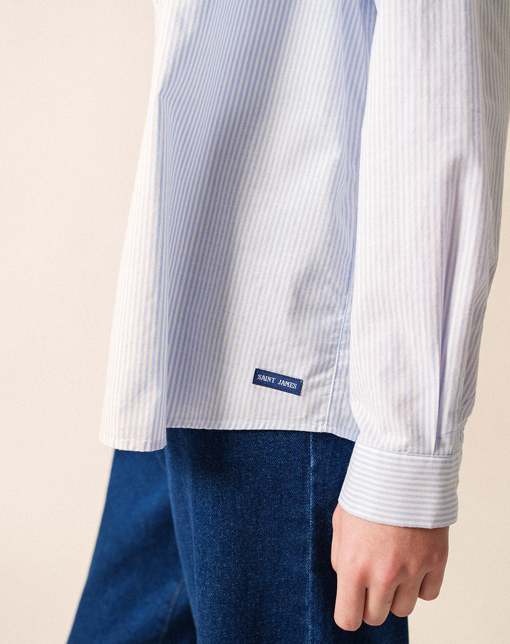 De Léna is een tijdloos gestreept overhemd van Saint James, gemaakt van 100% katoen. Het klassieke ontwerp met verticale strepen en een rechte pasvorm biedt een stijlvolle balans tussen comfort en elegantie.
