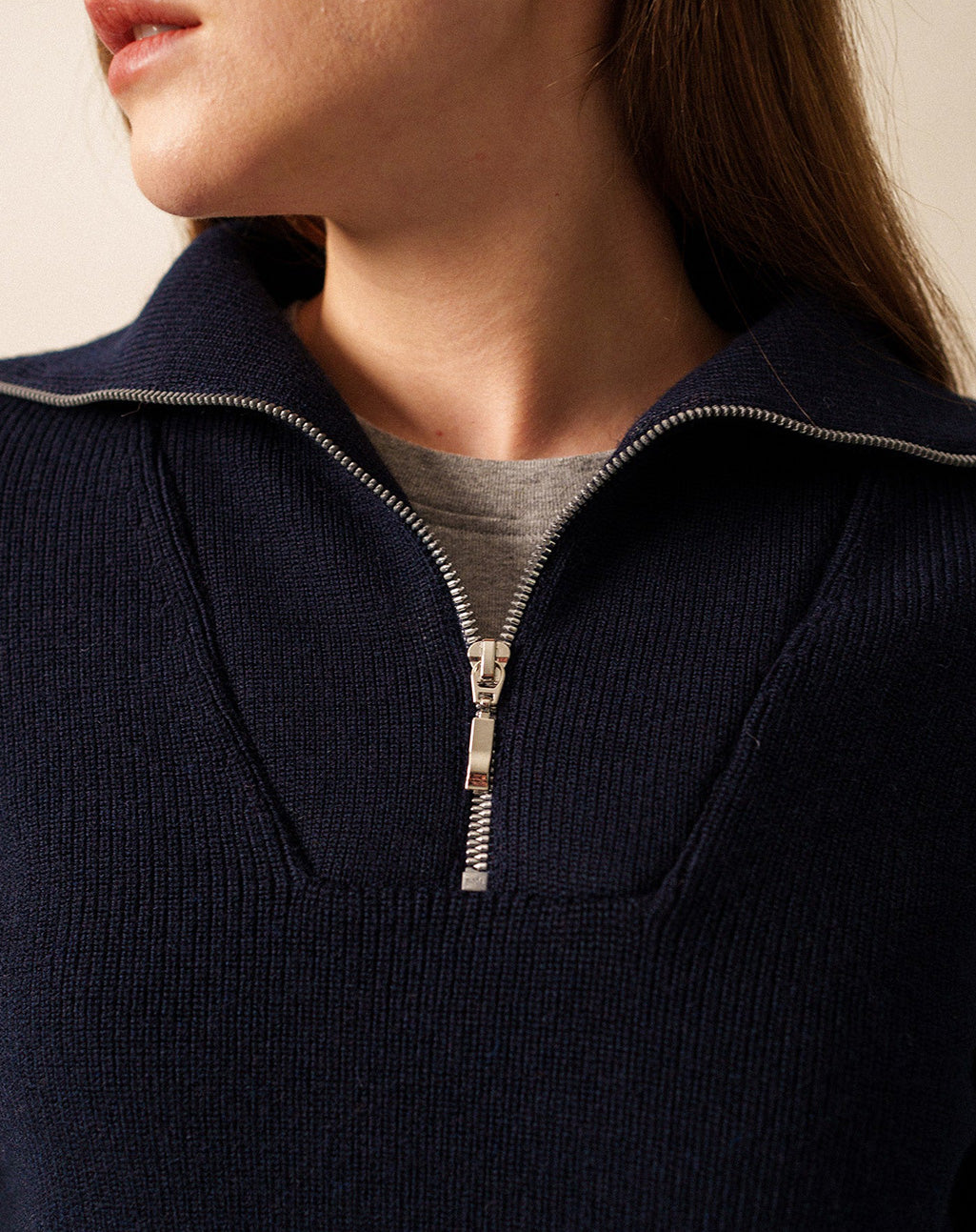 • Wollen trui met halve rits (camionneurstijl)