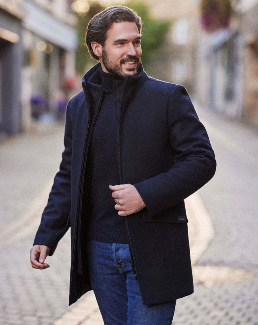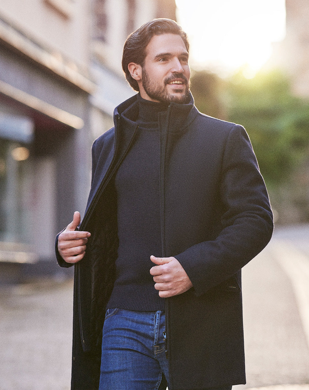 Wollen jas met rits en dubbele kraag – Calais van Dalmard Marine