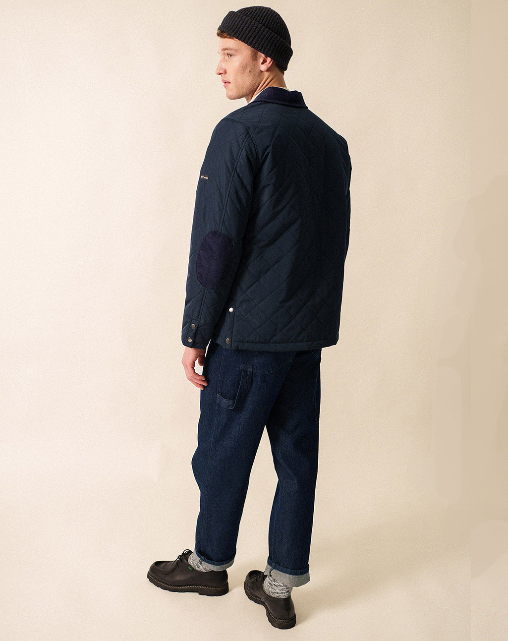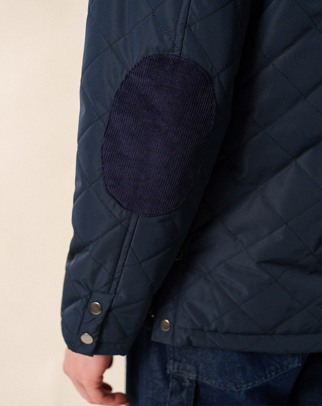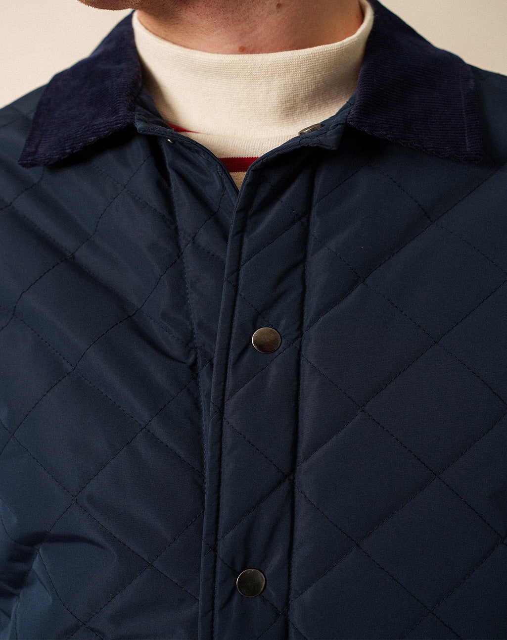 De corduroy kraag en elleboogstukken geven de jas een onderscheidende, tijdloze uitstraling. De diamantgewatteerde voering biedt uitstekende bescherming tegen de kou, terwijl de achtersplit met knopen zorgt voor extra bewegingsvrijheid en ventilatie.