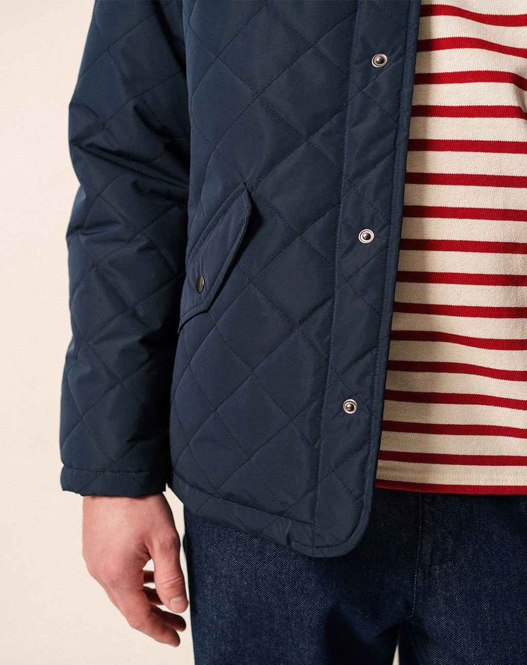 De St Nazaire jas van Saint James combineert klassieke elegantie met moderne functionaliteit. Deze gewatteerde jas, met zijn subtiele ruitstiksel en verfijnde afwerking, is de perfecte keuze voor de koelere dagen van het seizoen.