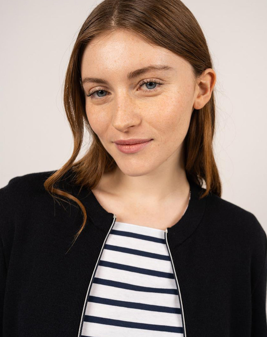 Damesvest van wol en katoen – Dubbelzijdig comfort & Franse elegantie
