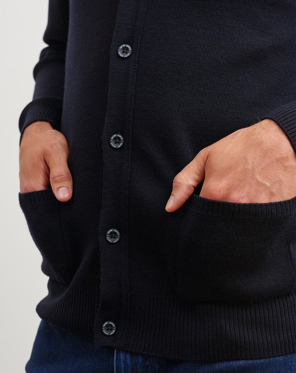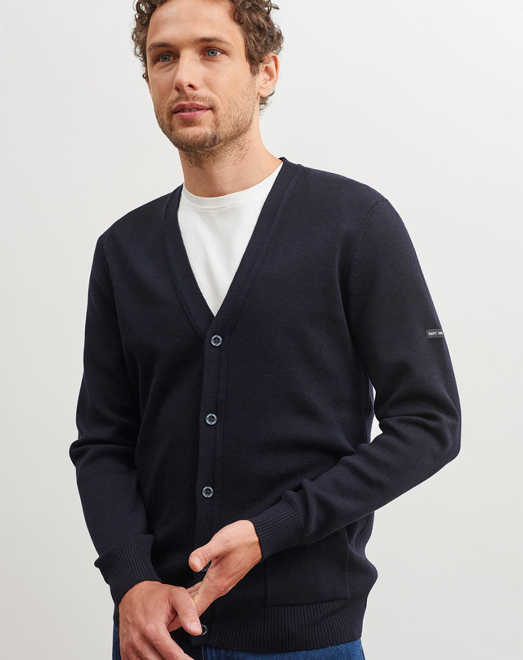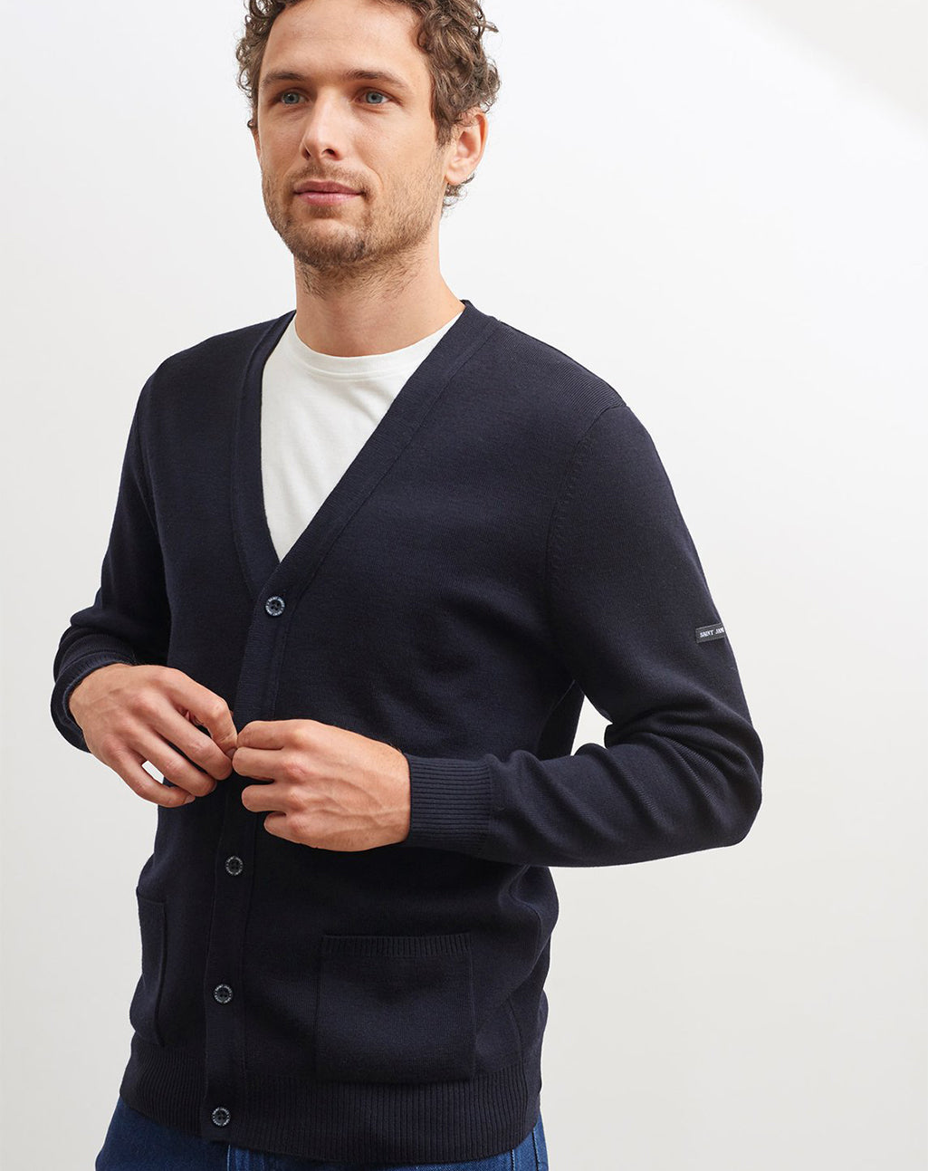 De Guingamp cardigan is een verfijnd en veelzijdig herenvest, gebreid van extra zachte merinowol. Dit klassieke vest met V-hals en knoopsluiting is een onmisbaar item voor elk seizoen – perfect om te dragen over een gestreept matrozen-T-shirt of een overhemd voor een stijlvolle en moeiteloze look.